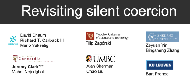 Last week I presented a paper at E-Vote ID: “Revisiting Silent Coercion”